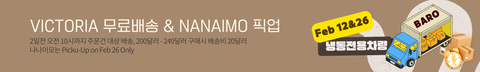 아보츠포드 & 칠리왁 배송 - Feb19, Mar 5 bi-weekly광역밴쿠버 무료배송 Free Delivery in Greater Vancouver($129+)빅토리아Victoria-Feb 12 & 26 | 나나이모 Nanaimo Feb26 delivery at your doorstep